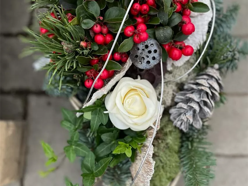 Ein Trauerfall trifft die Angehörigen, Freunde und Bekannte häufig unvorbereitet. Wir beraten Dich gerne in einem persönlichen Gespräch über gepflanzte Kränze, Schalen oder Herzen mit haltbaren saisonalen Pflanzen. Individuelle Schleifentexte oder Texte für Schiefertafeln besprechen wir gern mit Dir.